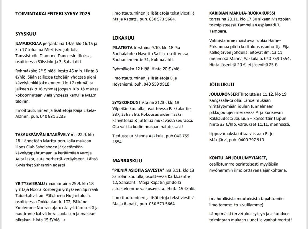 Sahalahden Martat on vireä ja elinvoimainen, vuonna 1937 perustettu yhdistys.